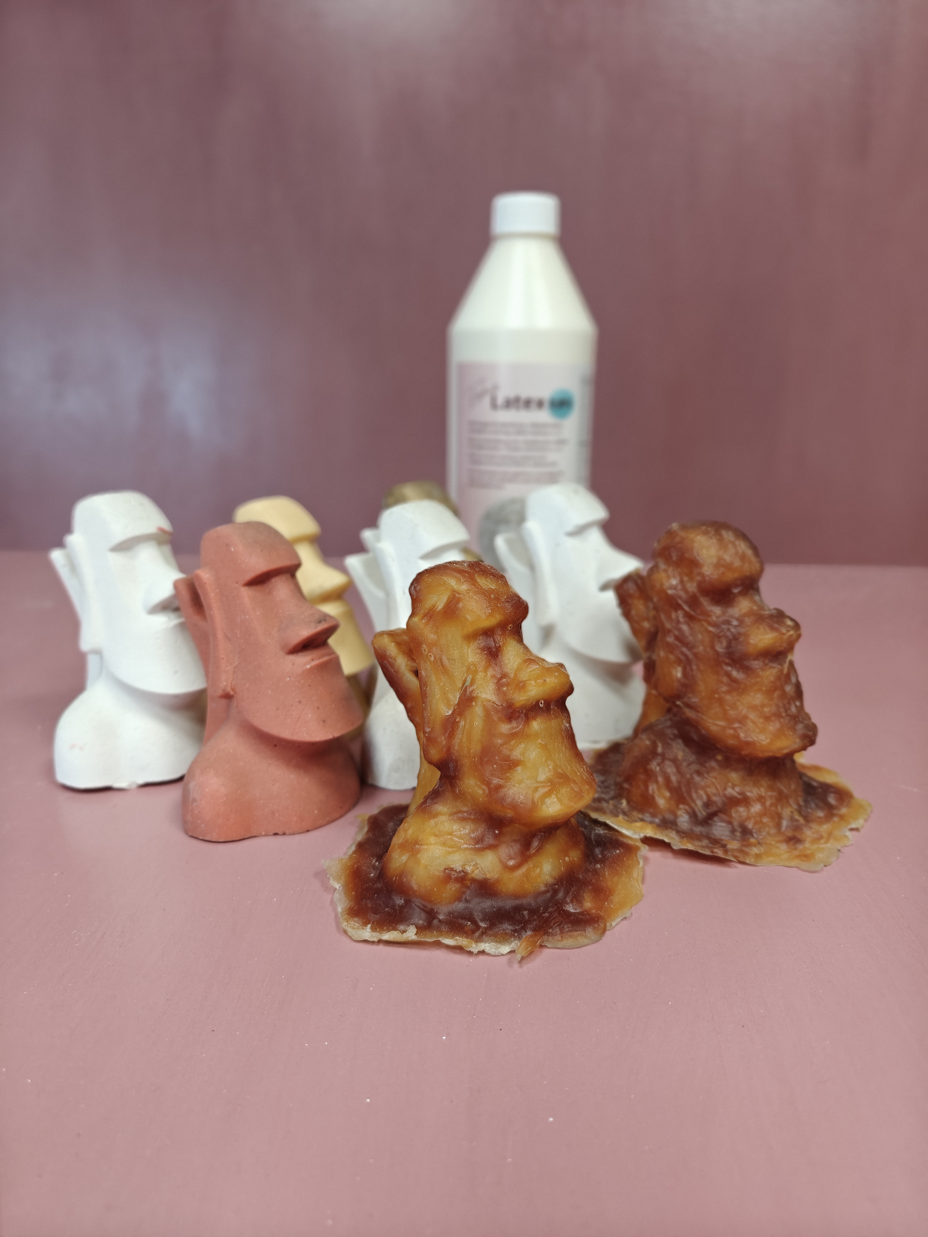 OBS: Med latex kan man inte göra avgjutningar där man häller latex runt om föremålet som skall gjutas. Vill du göra avgjutningar på detta sätt skall du i stället använda vårt Flytande Silikon. Var uppmärksam på att latexformar inte lämpar sig till gjutning med alla typer av gjutbetong. Då vissa gjutbetonger alstrar mycket värme i torkprocessen vilket gör att latexformen börjar att klistra sig fast.